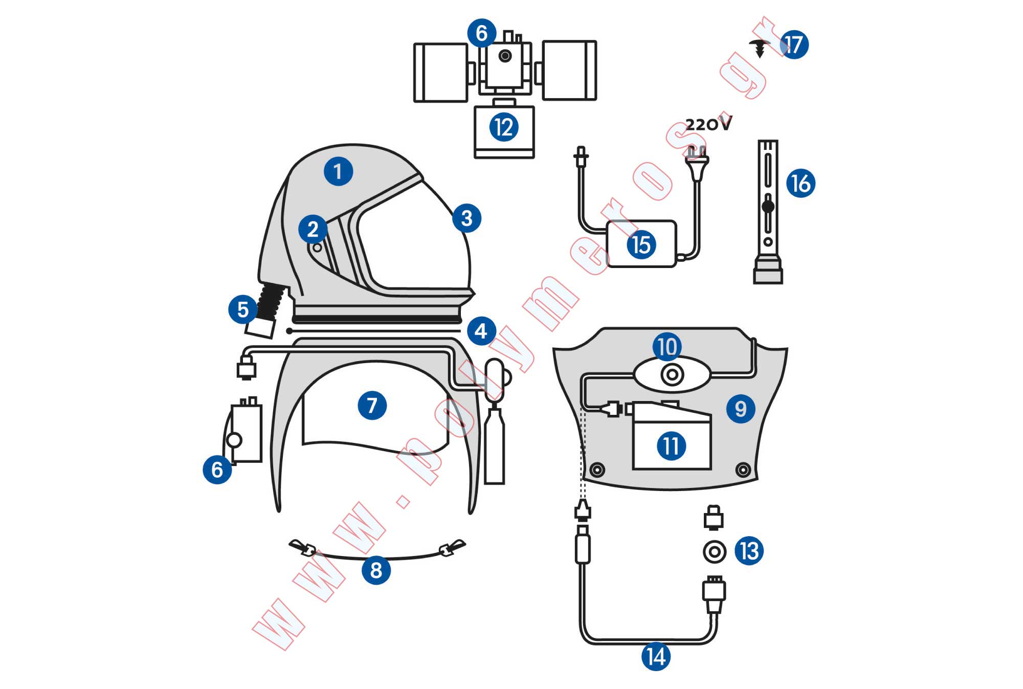 Είναι εξοπλισμένο με στρόβιλο που αναρροφά τον αέρα μέσα από τα φίλτρα και τον μεταφέρει (καθαρισμένο) στο γείσο, εμποδίζοντάς το να θολώσει.