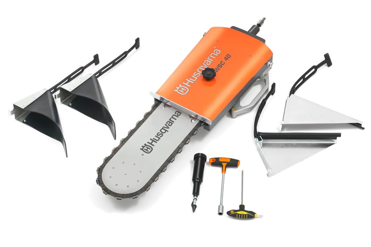 Το WSC 40 είναι ένα πραγματικά μοναδικό εξάρτημα αλυσίδας για κοπή τοιχοποιίας, που μετατρέπει τα Husqvarna WS 482 HF και WS 440 HF από δίσκο σε κοπή με αλυσίδα. Επιτρέπει αποδοτική και ακριβή κοπή γωνιών και μικρών ανοιγμάτων χωρίς υπερκοπή. Εγκαθίσταται εύκολα στον άξονα και εφαρμόζει στο άνοιγμα της κοπής χωρίς να απαιτείται επανατοποθέτηση του οδηγού.