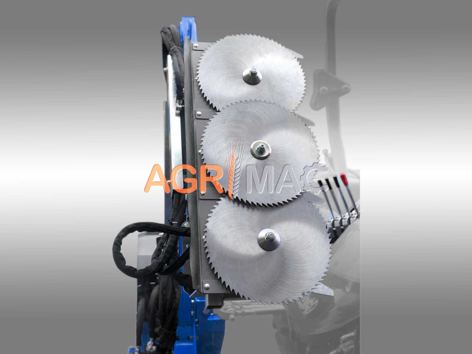 Διαθέτει 3 πριονόλαμες (72 δόντια η καθεμία) και διάμετρο 400 mm. Το πριόνι έχει αποτελεσματικό πλάτος εργασίας περίπου 900mm. Οι 3 λεπίδες πριονιού με μύτη, καρβιδίου κινούνται υδραυλικά. Απαιτείται παροχή υδραυλικού λαδιού τουλάχιστον 40 l/min.