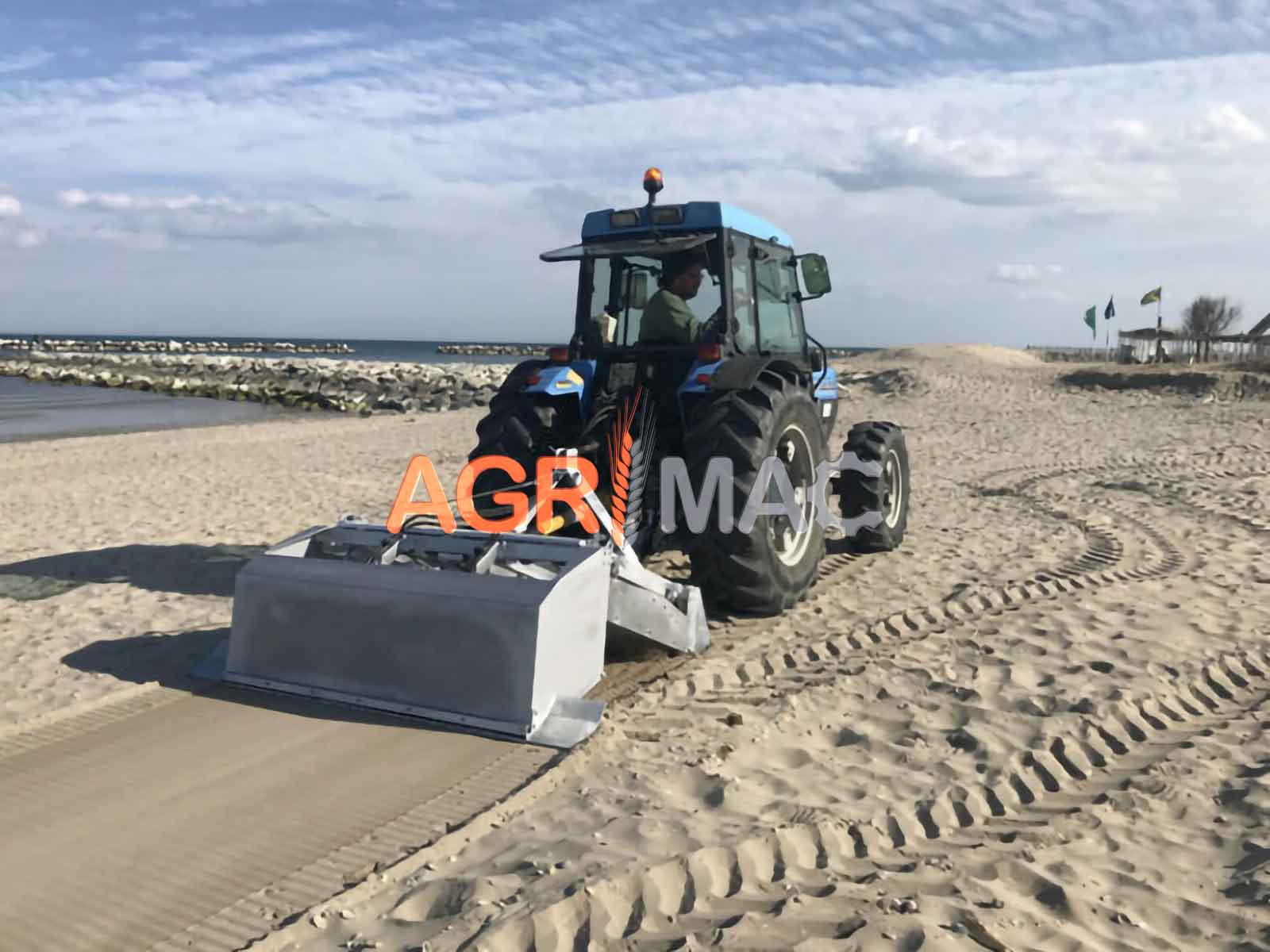 Μηχάνημα καθαρισμού παραλίας ρυμουλκούμενο με τρακτέρ, ιδανικό για χρήση με τρακτέρ 4 τροχών (50hp). Ιδανικό για καθαρισμό αμμωδών περιοχών (παραλίες, αποθήκες γηπέδων γκολφ, παιδικές χαρές, γήπεδα beach volley κ.λπ.) το σύστημα δόνησης, τα εναλλάξιμα κόσκινα με διάφορα πλέγματα σε σχήμα “σκαλοπάτι” και η δόνηση υψηλής συχνότητας επιτρέπουν το πλήρες κοσκίνισμα του η άμμος που φορτώνεται από τη λεπίδα, διαχωρίζει τα απόβλητα που θα πέσουν σε πρακτικό ατσάλινο δοχείο αδειάζεται υδραυλικά. Το βάθος της εργασίας ελέγχεται από τον χειριστή που ενεργεί στον υδραυλικό ανυψωτικό του τρακτέρ. Το μηχάνημα παρέχεται με 2 δυνατά κόσκινα με παλινδρομική κίνηση Το μηχάνημα είναι εξοπλισμένο με άξονα προπέλας με ελεγχόμενη δύναμη για τη σύνδεση με την απογείωση ισχύος του τρακτέρ. Το μηχάνημα συμμορφώνεται με τους κανονισμούς ce.