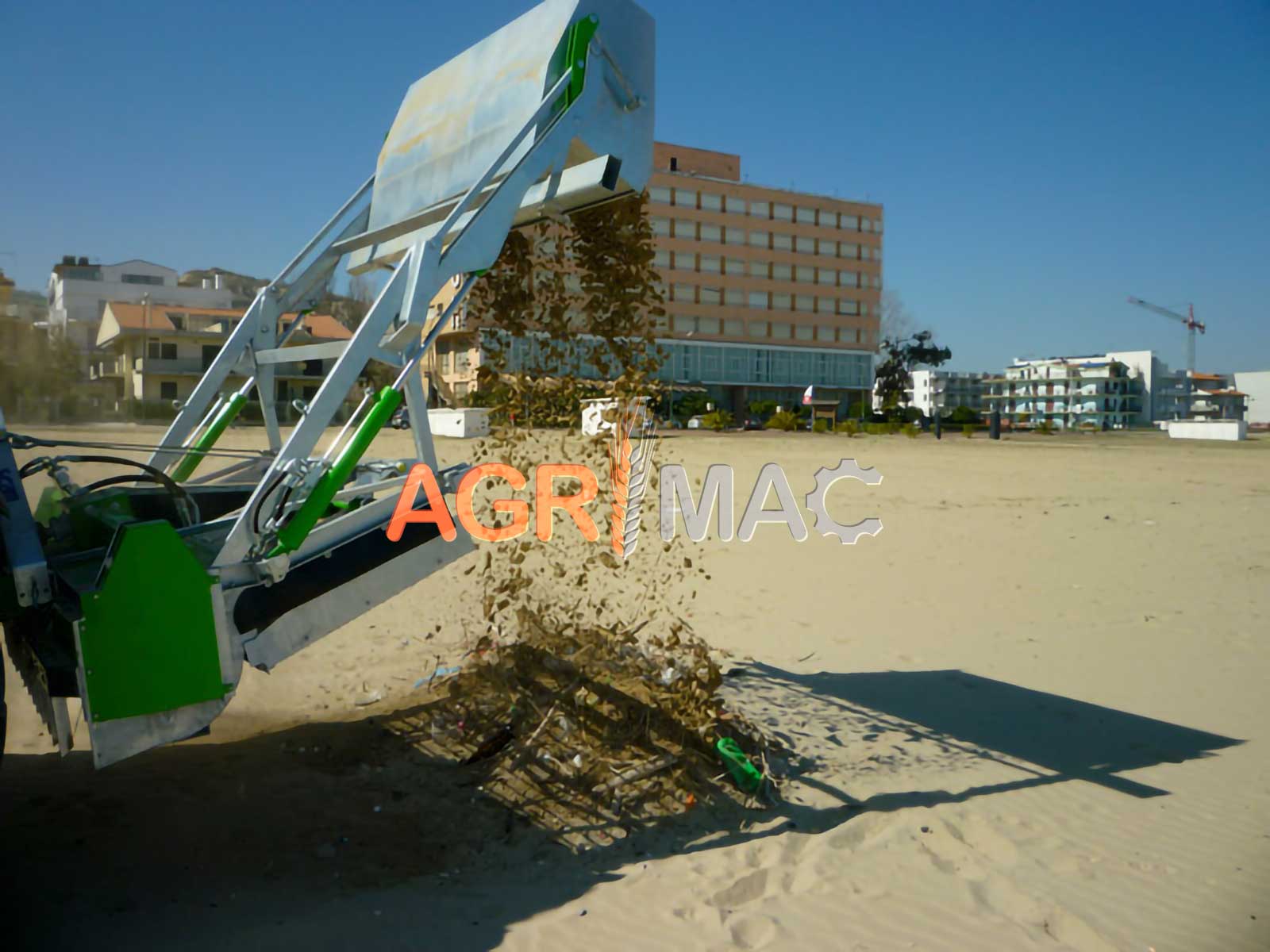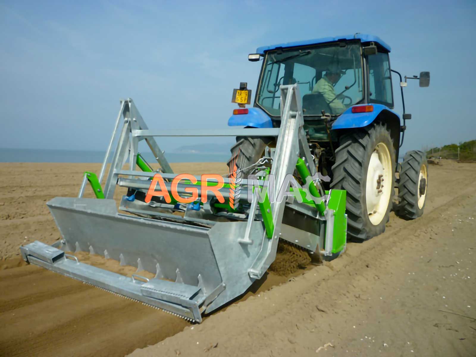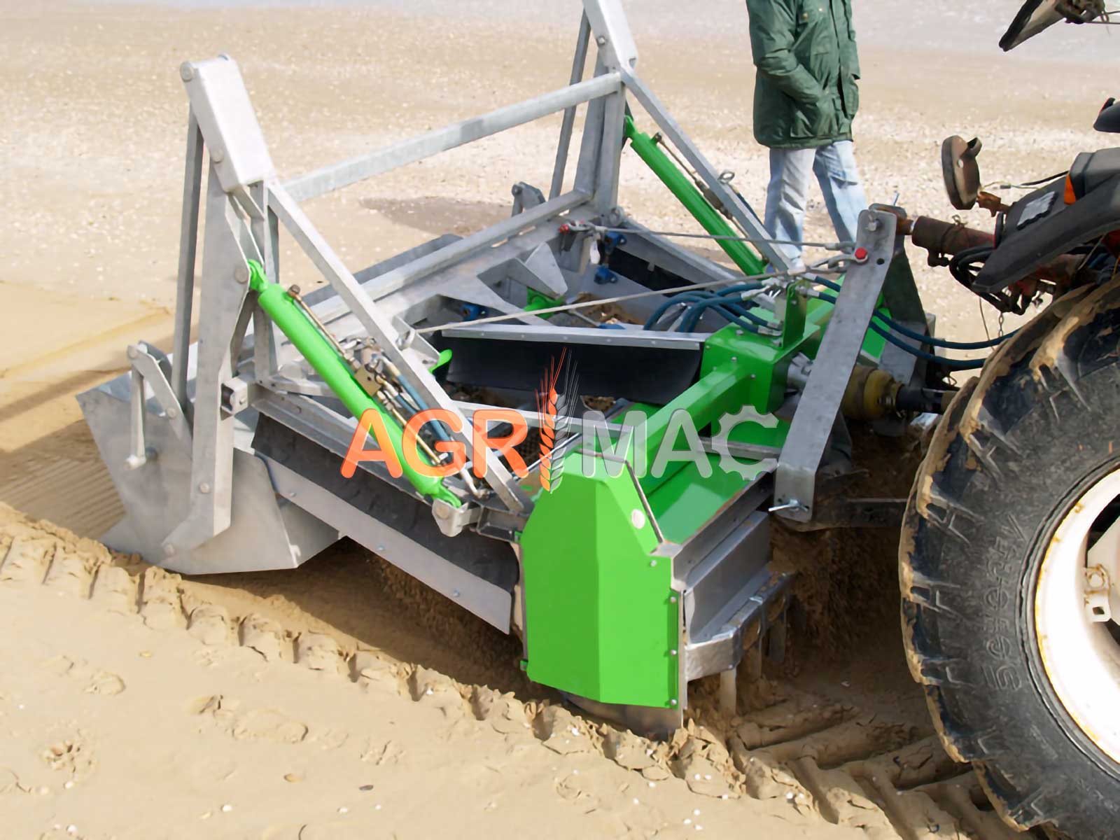 Μηχάνημα καθαρισμού παραλίας ρυμουλκούμενο με τρακτέρ, ιδανικό για χρήση με τρακτέρ 4 τροχών (80-90hp). Ιδανικό για καθαρισμό αμμωδών περιοχών (παραλίες, καταφύγια γηπέδων γκολφ, παιδικές χαρές, γήπεδα beach volley κ.λπ.).