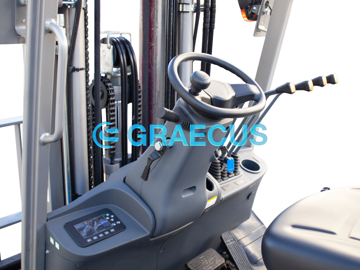 ελέγχου τοποθετημένος στα δεξιά του χειριστή εξασφαλίζουν μέγιστη ορατότητα και καλύτερο έλεγχο. - Υδραυλικό τιμόνι μειωμένων στροφών μειώνει την κόπωση βελτιώνοντας τον έλεγχο.