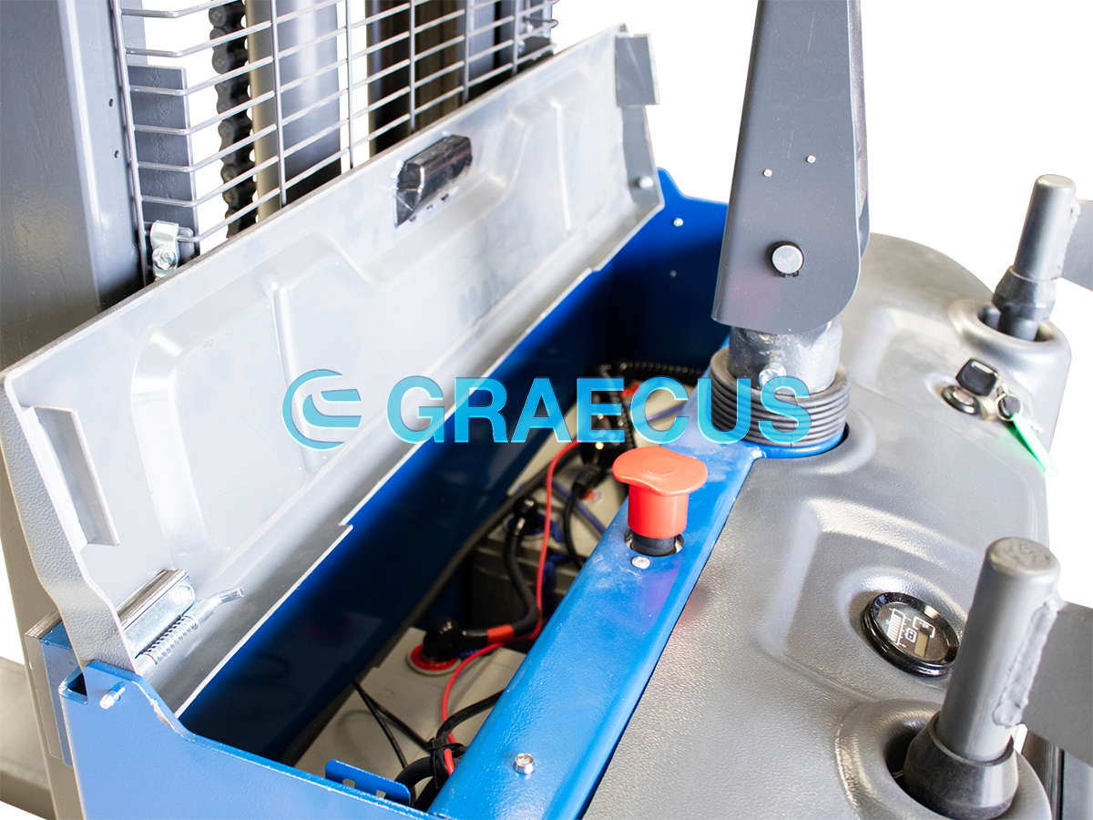 - Εφοδιασμένο με αναδιπλούμενη πλατφόρμα χειριστή και πλαϊνά προστατευτικά, με αισθητήρα ταχύτητας κάτω από την πλατφόρμα για ασφαλή οδήγηση.