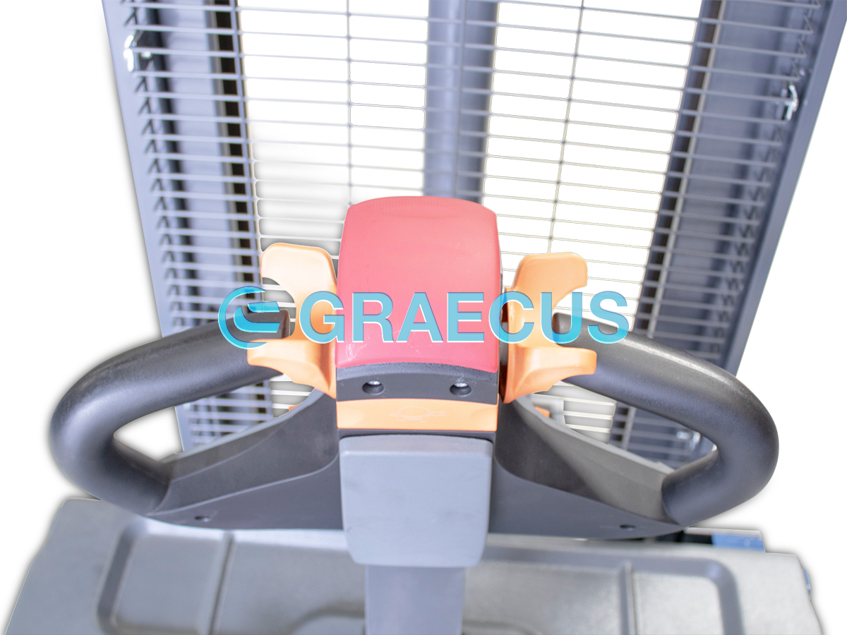- Εργονομικό τιμόνι ελέγχου παρέχει στον χειριστή άνεση και ακριβή έλεγχο του φορτίου.