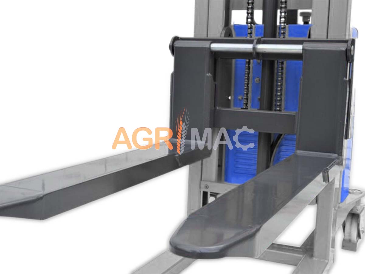 - Η λειτουργία της ανύψωσης πραγματοποιείται χάρη στο ηλεκτροϋδραυλικό σύστημα περόνων χωρίς να απαιτείται σωματική προσπάθεια στον χειριστή, γεγονός που διευκολύνει πολύ την εργασία.