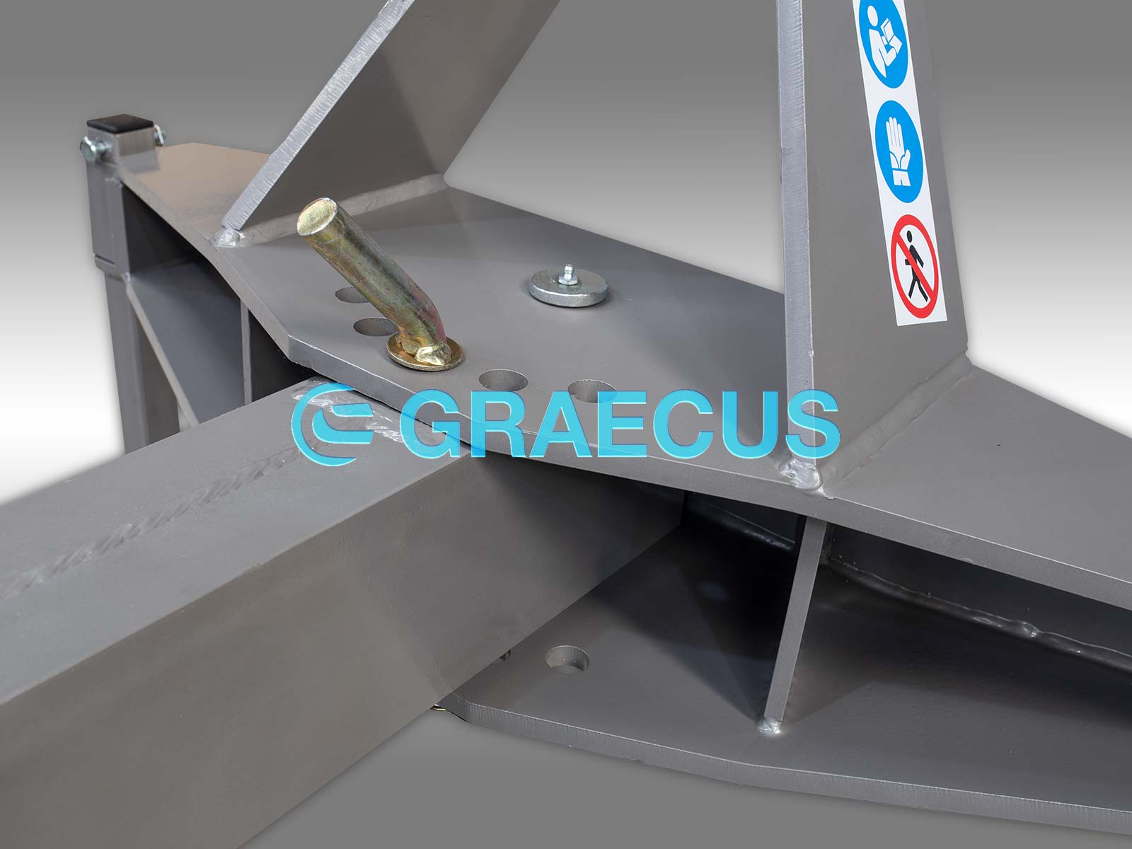 - Ο βραχίονας μπορεί να μετατοπιστεί έξω από το τρακτερ( αριστερά ή δεξιά), εύκολα και γρήγορα με χρήση πείρου σε πλάκες.