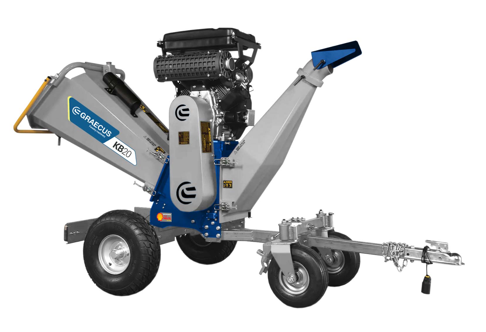 Ο βενζινοκίνητος κλαδοτεμαχιστής GRAECUS Loncin KB20 με κινητήρα 764 cc (25 HP) διαθέτει ηλεκτρική μίζα, ημιαυτόματη τροφοδοσία, σύστημα τυμπάνου με 3 μαχαίρια, ρυθμιζόμενη εκτόξευση 360°, μεγάλα ροδάκια και CE. Παραγωγή 8–9 m³/h.