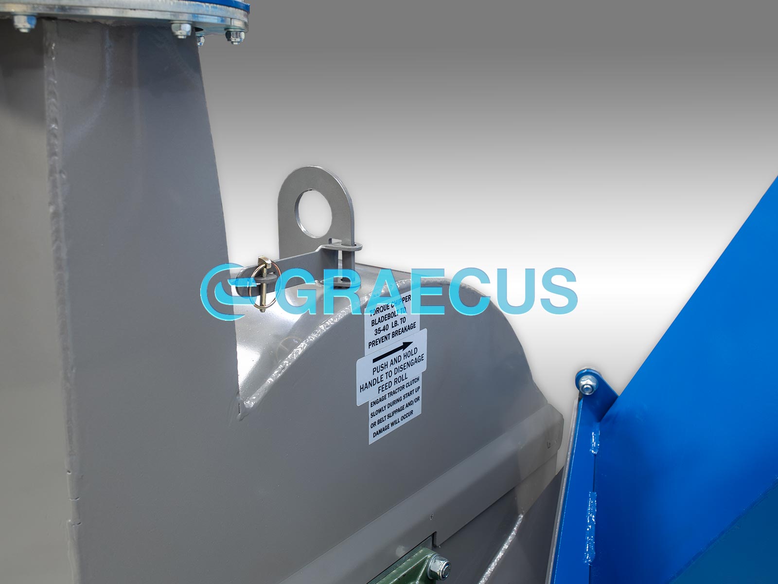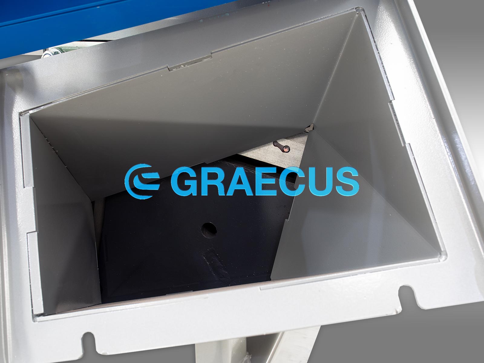 - Η χοάνη μπορεί να διπλωθεί προς τα επάνω μέρος για τη μεταφορά και ασφαλίζει με πείρο.