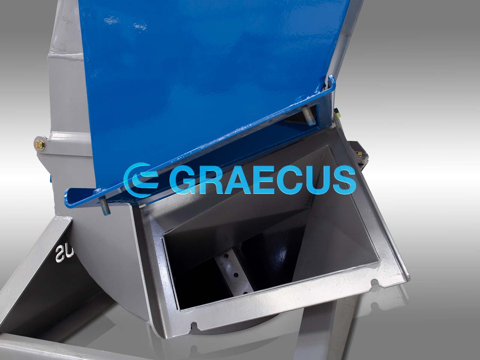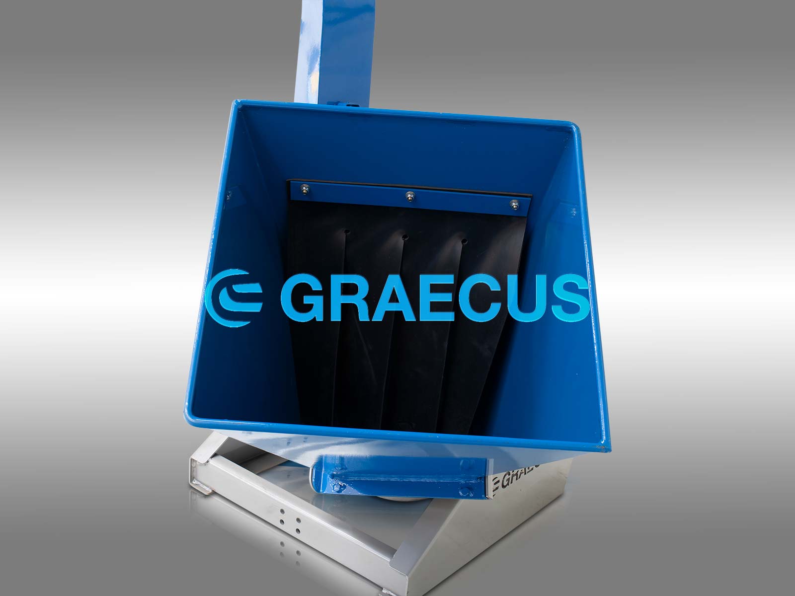 - Η χοάνη μπορεί να διπλωθεί προς τα επάνω μέρος για τη μεταφορά και ασφαλίζει με πείρο.