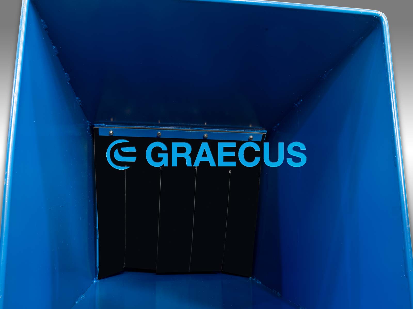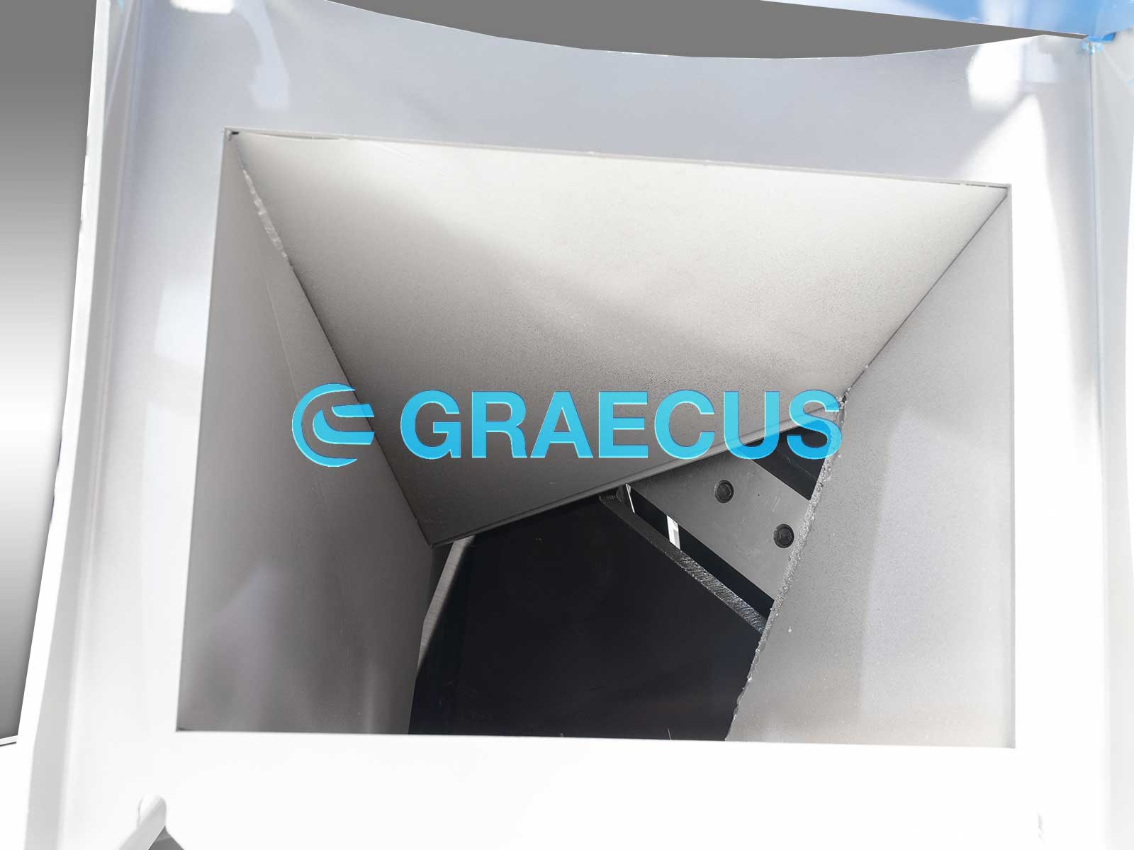- Η χοάνη μπορεί να διπλωθεί προς τα επάνω μέρος για την μεταφορά και ασφαλίζει με πείρο.