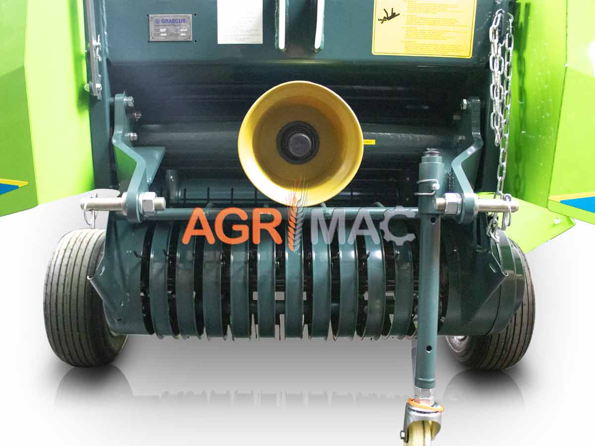 - Παράγει στρογγυλές μπάλες βάρους περίπου 20-30 κιλών που μπορούν να μετακινηθούν με το χέρι, ιδανικό για μικρές φάρμες.