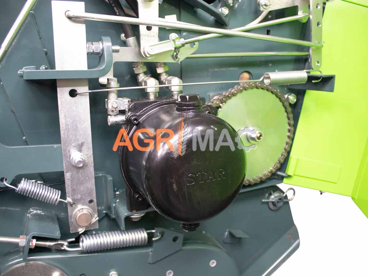 Η πρέσα για μπάλες διαθέτει τη δική της υδραυλική αντλία για τον χειρισμό της μπάλας και το βάρος της μπορεί εύκολα να ρυθμιστεί στο βάρος που προτιμά ο χειριστής. Ακόμη και οι υγρές μπάλες μπορούν να δεματοποιηθούν με περιεκτικότητα σε υγρασία άνω του 60%.