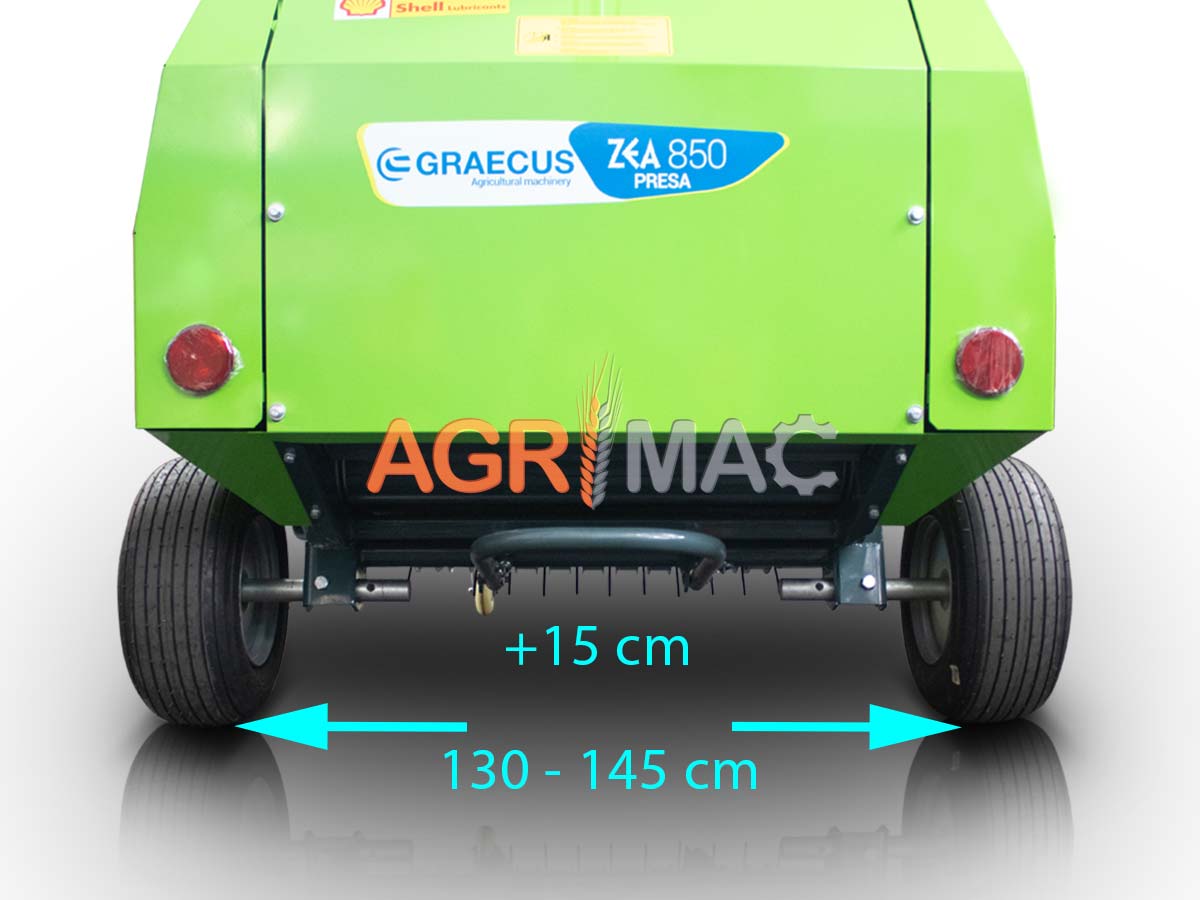 Σε σύγκριση με τα τετράγωνα χορτοδετικά, το GRAECUS ZEA PRESA 850 έχει μικρότερες διαστάσεις, ώστε να μπορεί να λειτουργήσει σε περιορισμένους χώρους, απότομες πλαγιές ή στενά περάσματα κ.λπ.