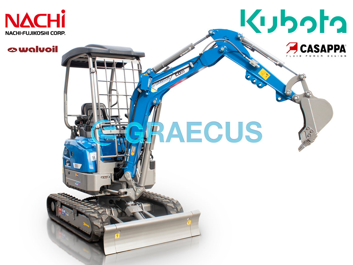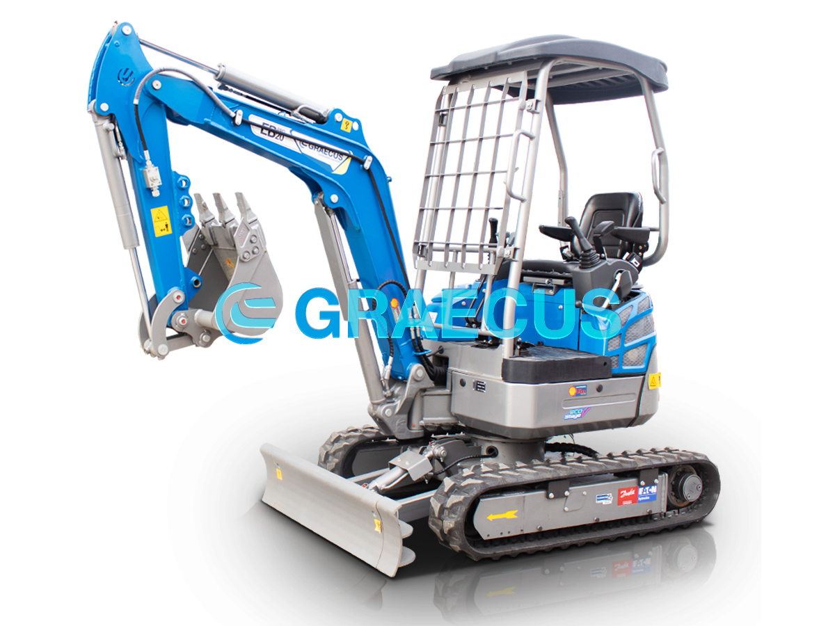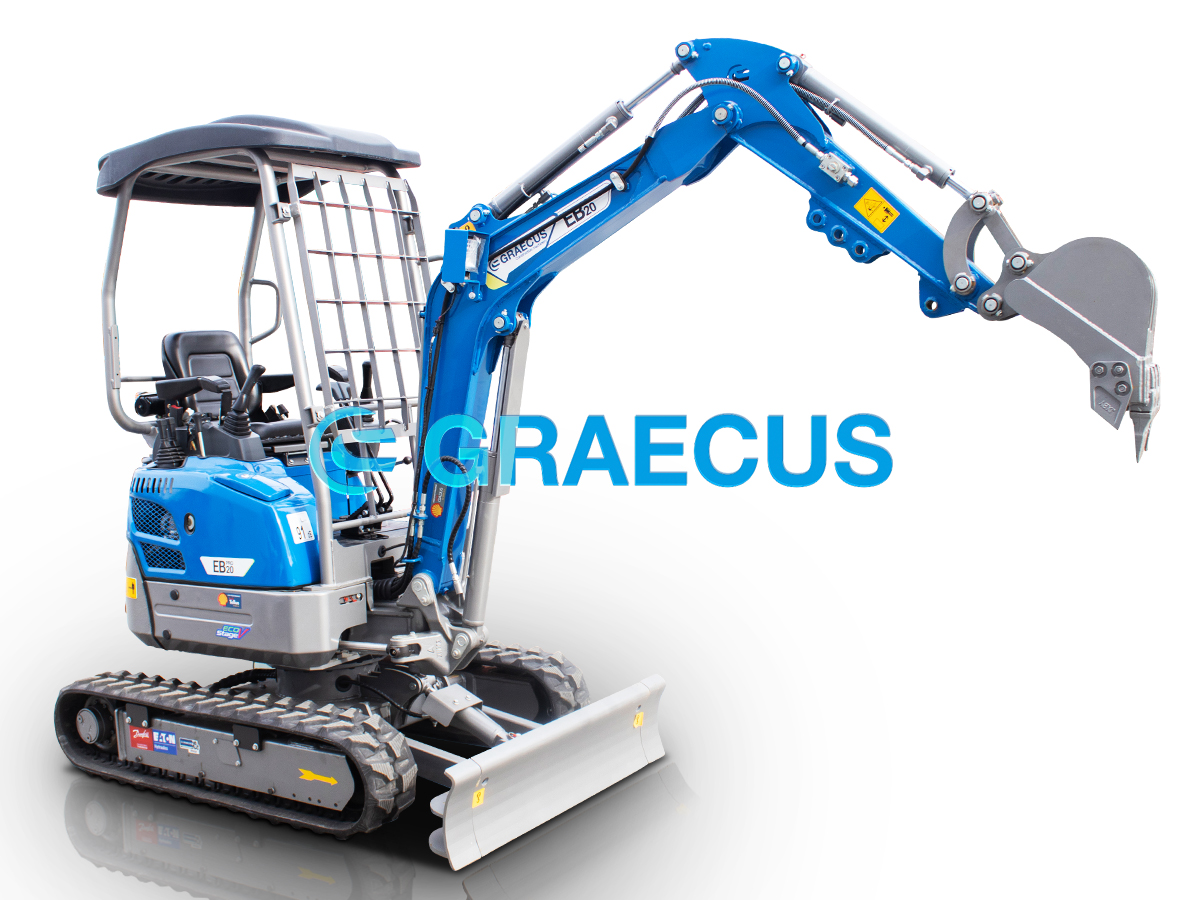 EB20-PRO | Graecus | Μίνι τσαπάκι 2T, Kubota Diesel, με περιστροφή στην μπούμα, πτυσσόμενες ερπύστριες, πλαϊνούς μοχλούς χειρισμού και γραμμή σφύρας