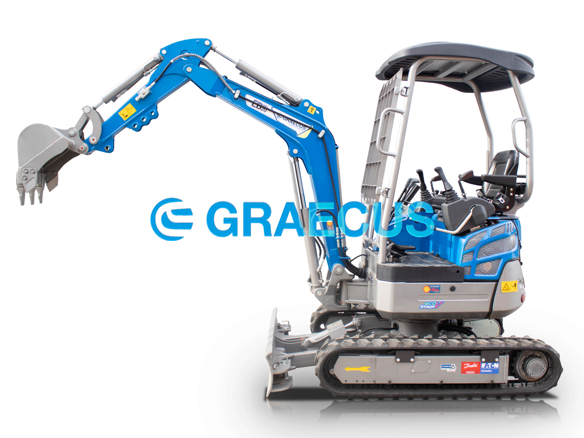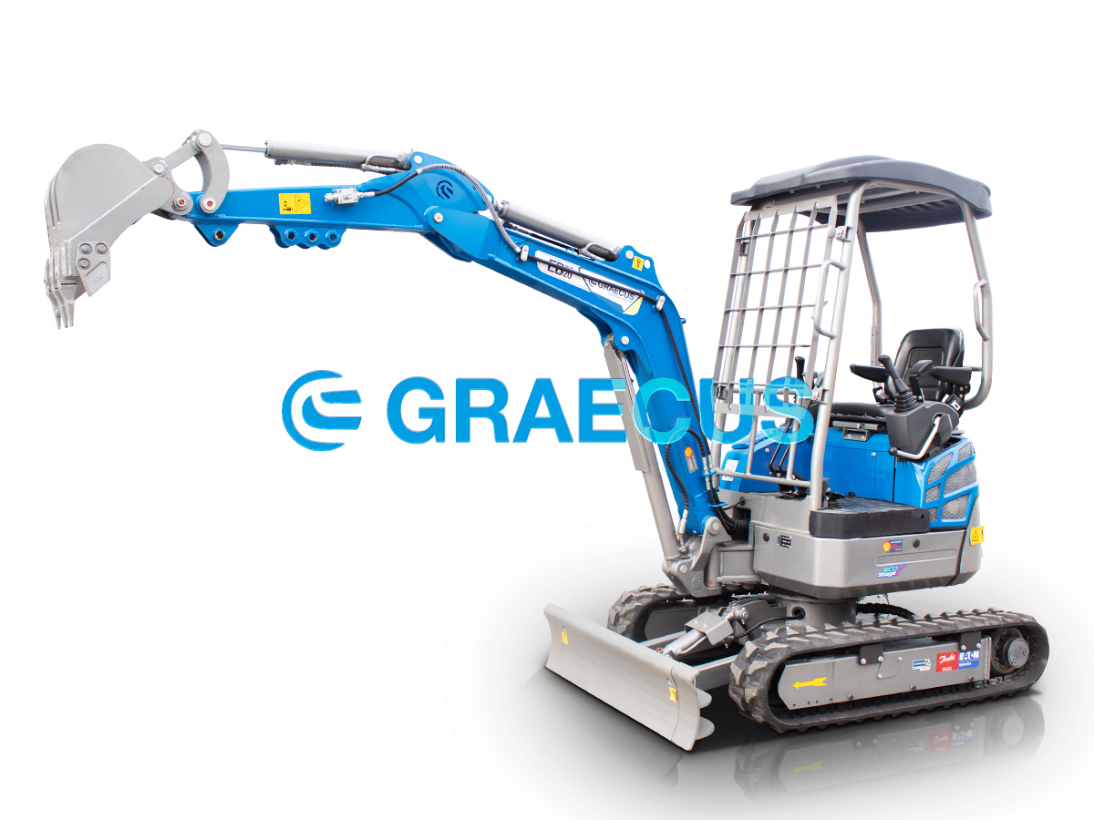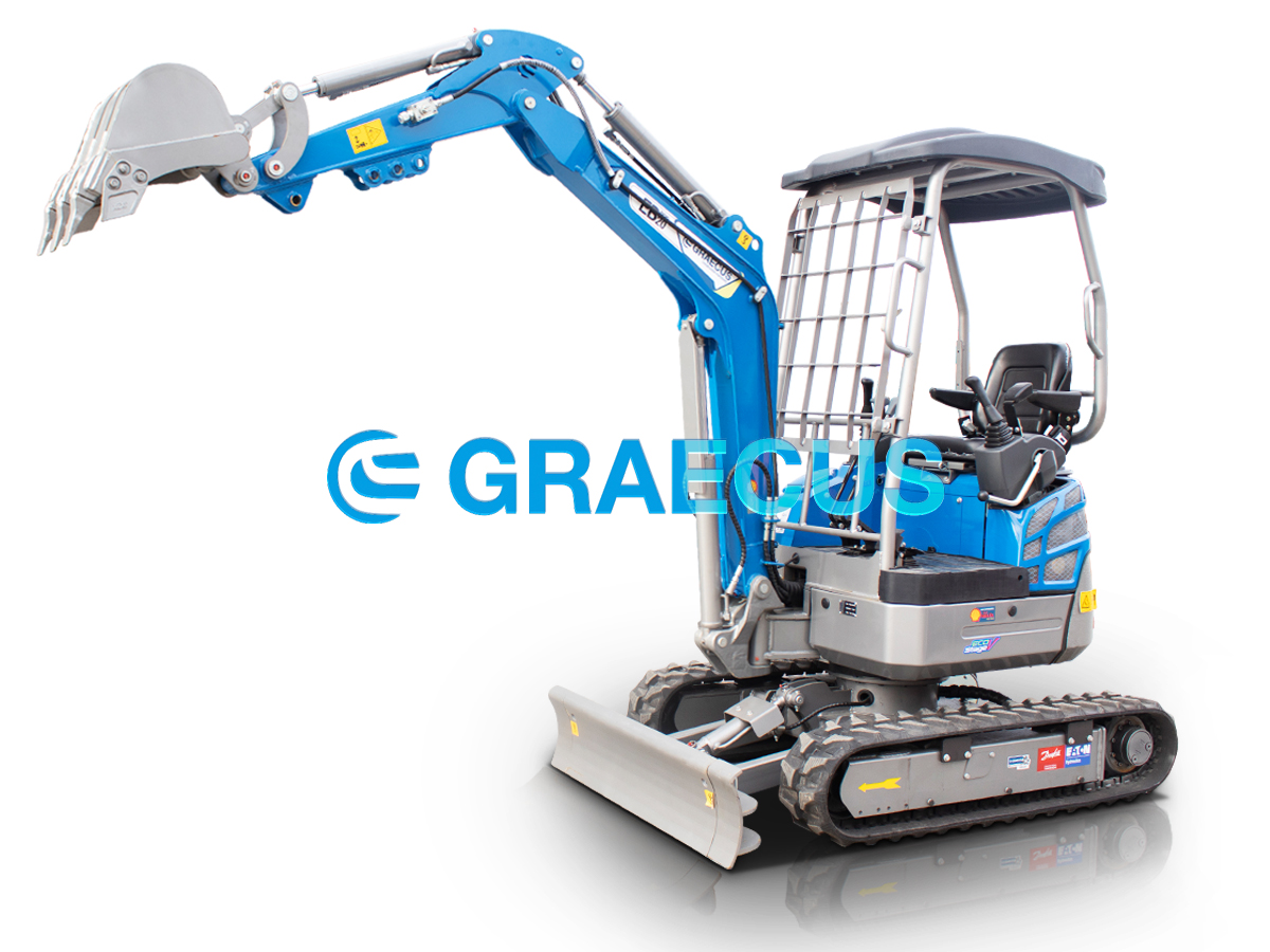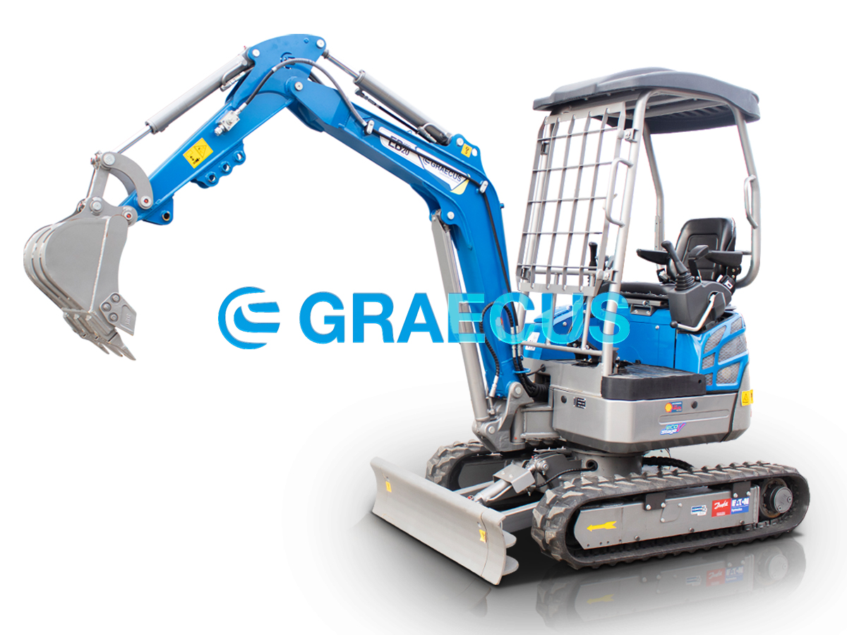 EB20-PRO | Graecus | Μίνι τσαπάκι 2T, Kubota Diesel, με περιστροφή στην μπούμα, πτυσσόμενες ερπύστριες, πλαϊνούς μοχλούς χειρισμού και γραμμή σφύρας
