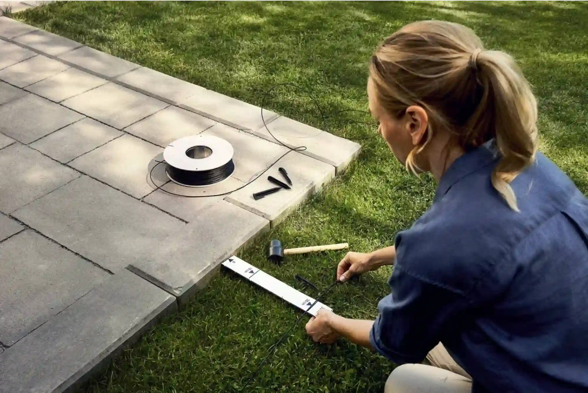 Κιτ εγκατάστασης που περιλαμβάνει καλώδιο οριοθέτησης, πλαστικά πασσαλάκια, συνδέσμους βάσης φόρτισης και συνδέσμους καλωδίου, κατάλληλα για τον κήπο σας. Κιτ μεσαίου μεγέθους - Κατάλληλο για ανοιχτές εγκαταστάσεις μέχρι και 2000 m2 ή περίπλοκες εγκαταστάσεις μέχρι και 1000 m2.