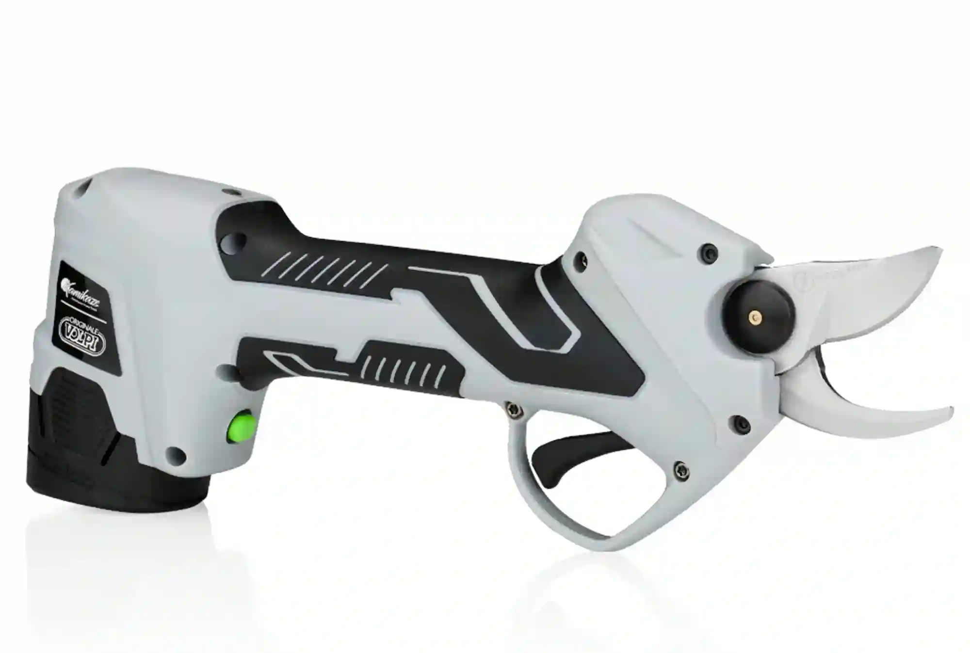 KV310: γρήγορο, ισχυρό και ελαφρύ ηλεκτρονικό κλαδευτήρι μπαταρίας Το ασύρματο κλαδευτήρι της Originale Volpi's Powercut Line προορίζεται για επαγγελματική χρήση στη συντήρηση πάρκων και κήπων και για χρήση στη γεωργία, για κλάδεμα αμπελώνων και οπωρώνων. Το μεγάλο πλεονέκτημα είναι το γεγονός ότι έχετε ενσωματωμένη την μπαταρία λιθίου στο σώμα του κλαδευτηρίου, επιτρέποντάς σας να εργάζεστε χωρίς καλώδια και σακίδια που εμποδίζουν την κίνηση. Αρκετά ισχυρό για να αντικαταστήσει το κανονικό χειροκίνητο ψαλίδι, ελαφρύ χάρη στα υλικά που χρησιμοποιούνται για την κατασκευή και εξαιρετικά αξιόπιστο για τις σχεδιαστικές επιλογές που στοχεύουν στην εξασφάλιση της χρήσης τους ακόμα και όταν είναι απαιτητικές. Το KV310 είναι η ιδανική επιλογή για κλάδεμα στη γεωργία και την κηπουρική. Χάρη στον χρόνο λειτουργίας που παρέχεται από την ενσωματωμένη επαναφορτιζόμενη μπαταρία λιθίου και τον φορτιστή μπαταρίας 3 κατευθύνσεων, καθώς και στον κινητήρα χωρίς ψήκτρες 150 W επιτρέπει μια γρήγορη και συνεχή εργασία. Είναι εξοπλισμένο με εναλλάξιμες λεπίδες από χάλυβα με μέγιστη ικανότητα κοπής διαμέτρου 28-30 mm, εργονομική λαβή τεχνοπολυμερούς υψηλής αντοχής και λειτουργία γρήγορης απενεργοποίησης σε αναμονή. Με δυνατότητα προοδευτικής κοπής.