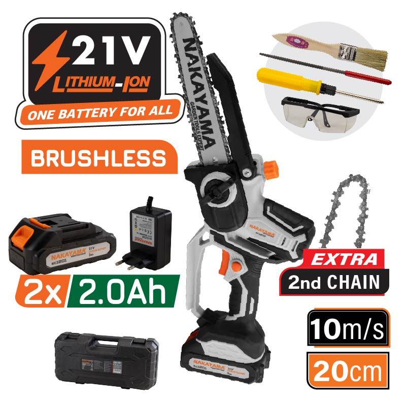 EC1200 | Nakayama | Κλαδευτικό Αλυσοπρίονο Μπαταρίας 21V, Brushless, Li-Ion, Λάμα 20cm, 1.3kg