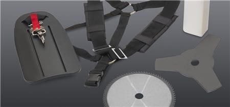 Συμπεριλαμβανόμενα αξεσουάρ Περιλαμβάνει εξάρτυση, δοχείο ανάμειξης καυσίμου, πριονωτή λεπίδα και λεπίδα χόρτου. |